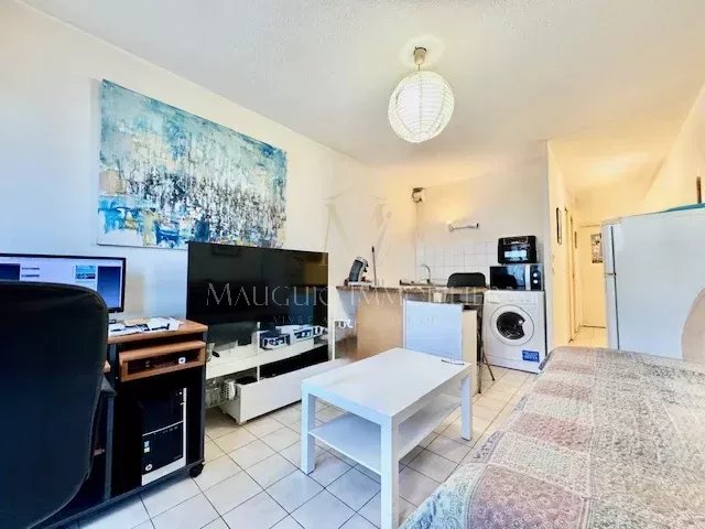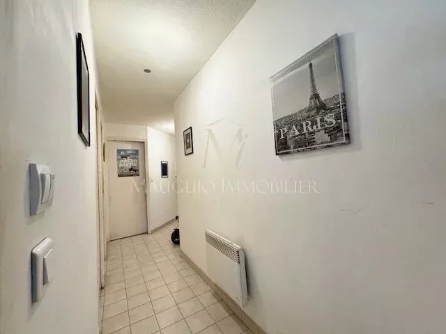 L'appartement de 35m² dispose d'une pièce de vie avec cuisine ouverte, séjour et balcon puis d'une belle chambre spacieuse avec placards. Un long couloir dessert la salle de bains et les toilettes.